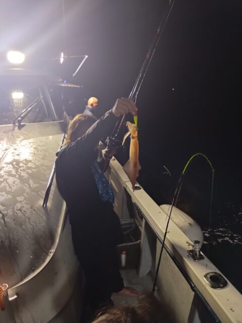スタートが少し遅くヒヤヒヤしましたが、火が付けば皆さん棚声かけながら良く掛けられてました。15ハイ程でクーラーインしての繰り返しでトップ110、初チャレボーイも50杯で皆さん満足釣行でした。